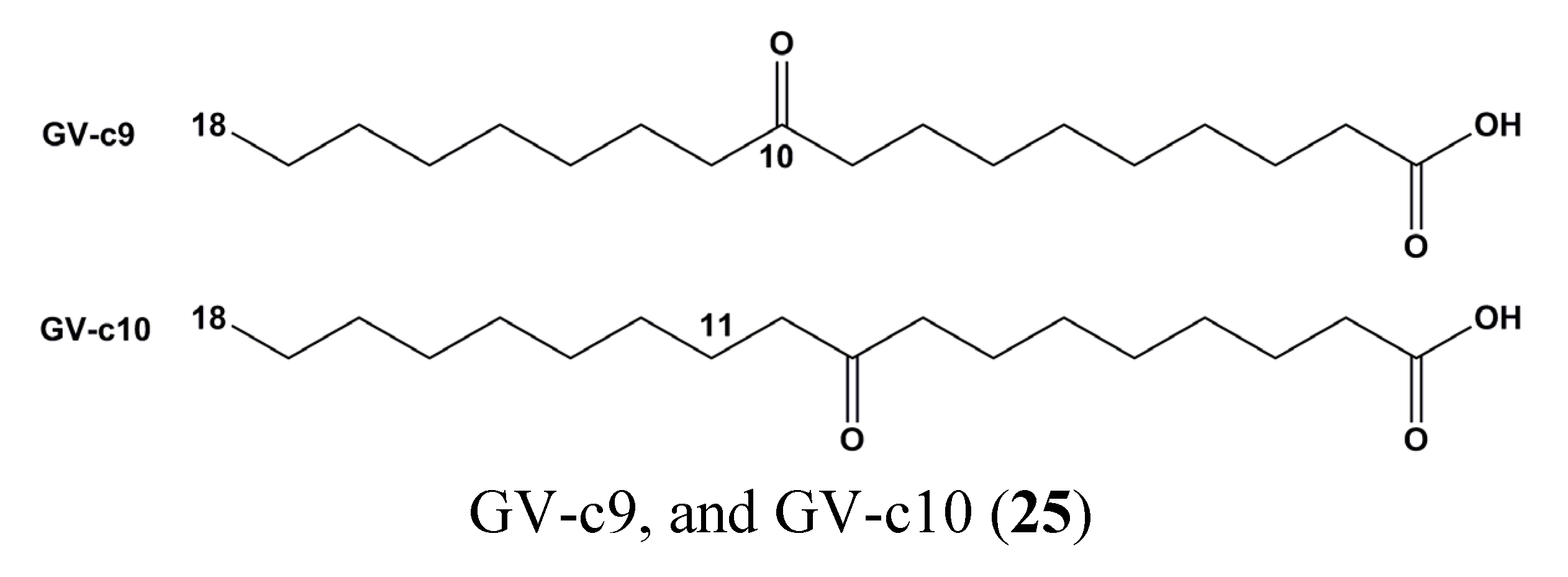Chemical structures of two enone fatty acids, GV-c9, and GV-c10 (25).