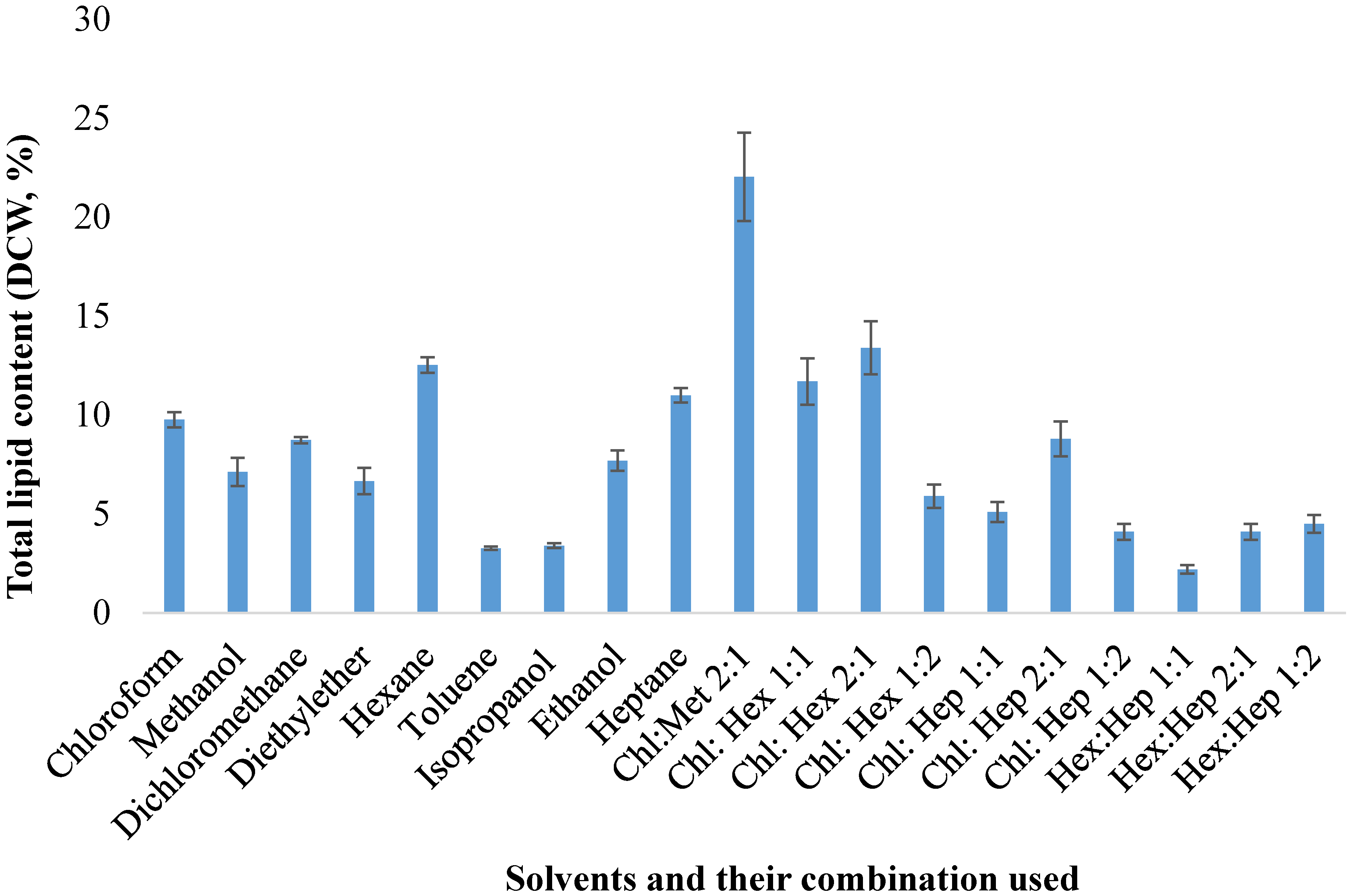 3.3. Lipid Extraction from Thraustochytrids by Organic Solvents
