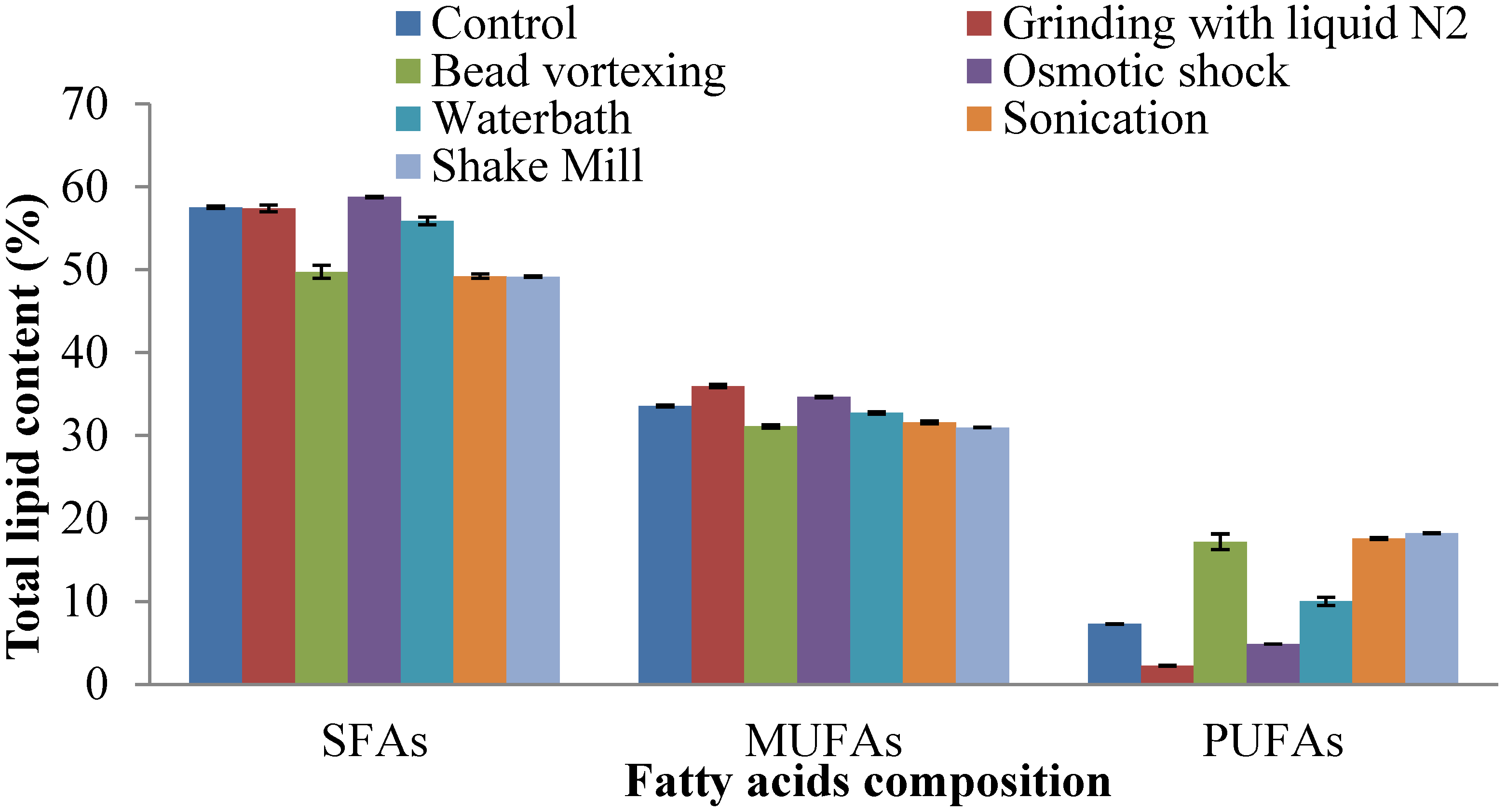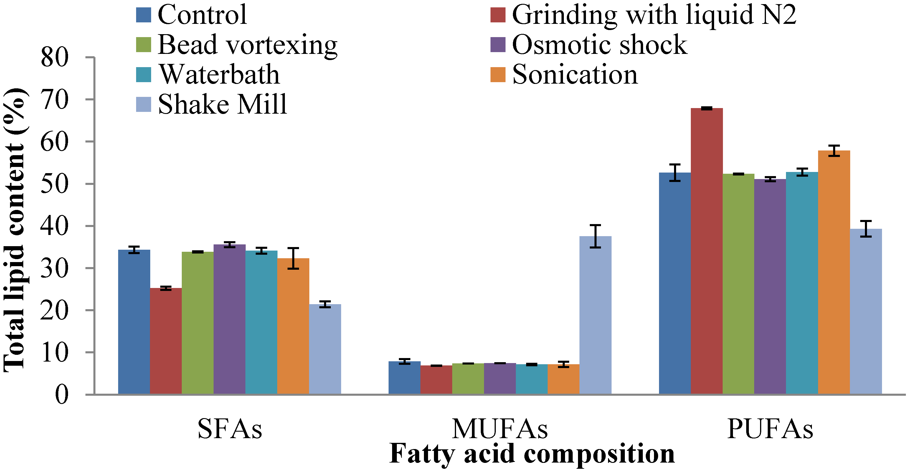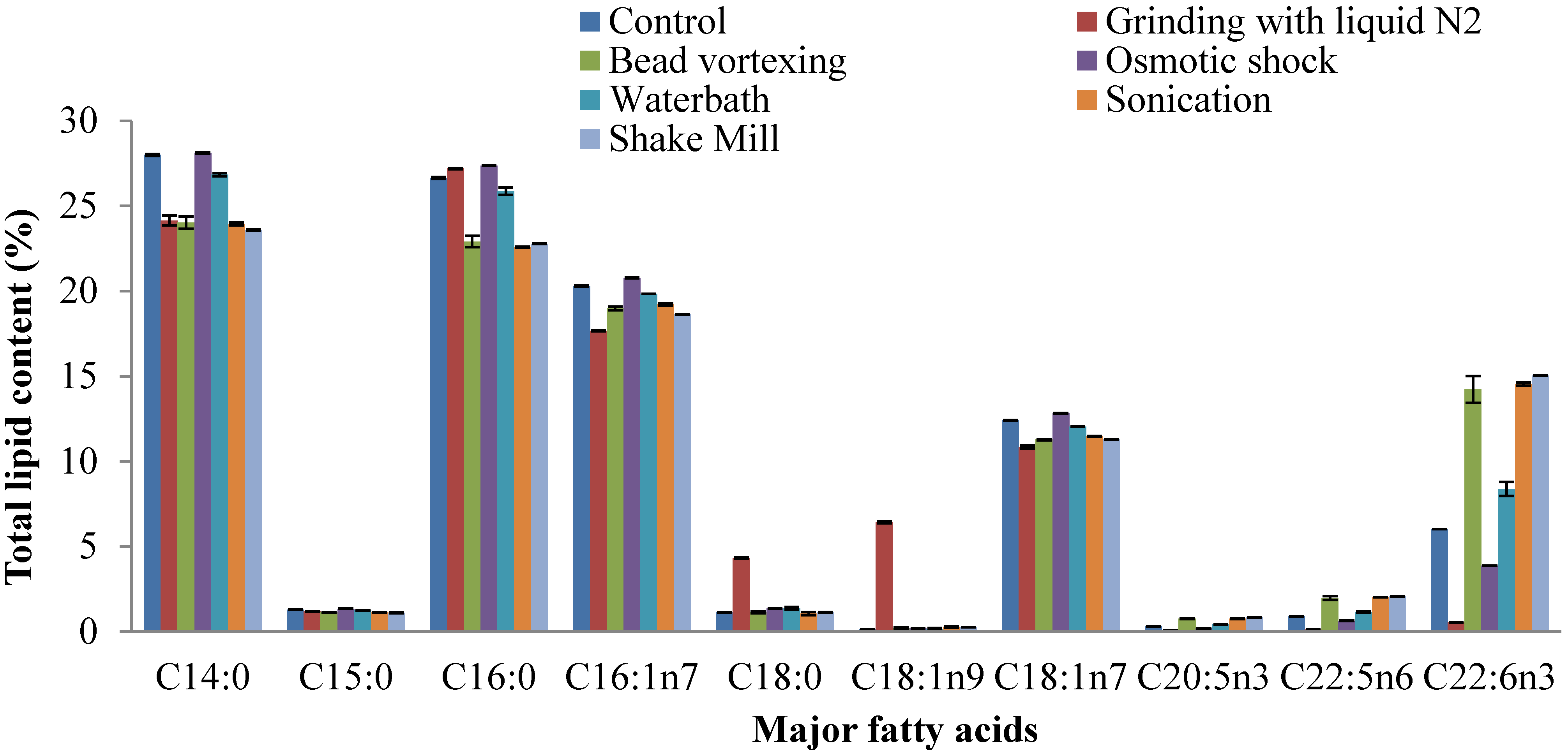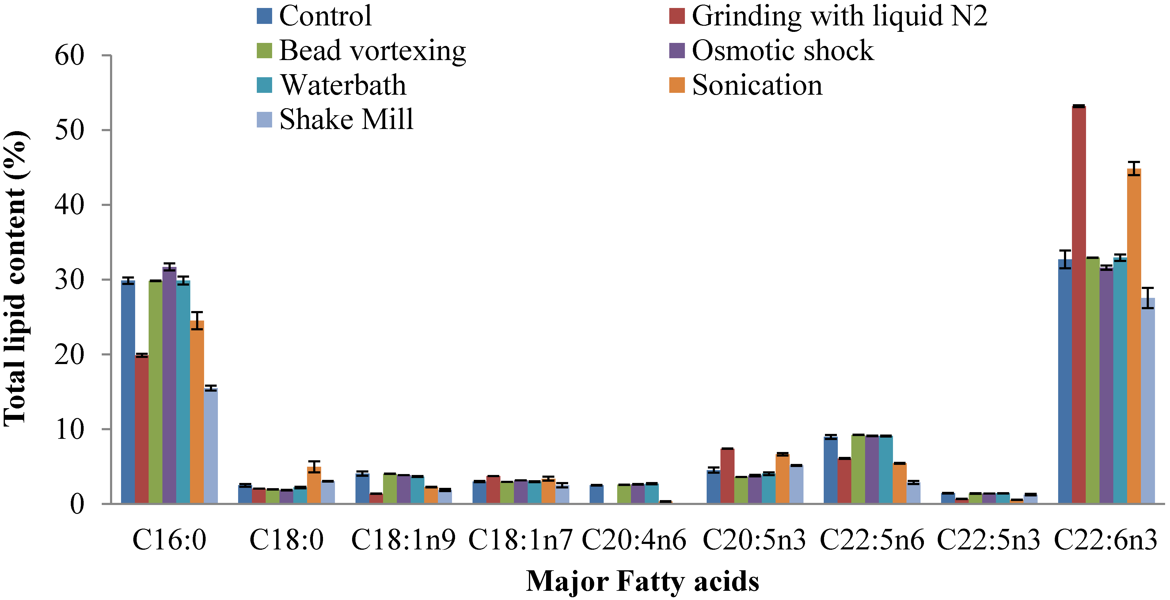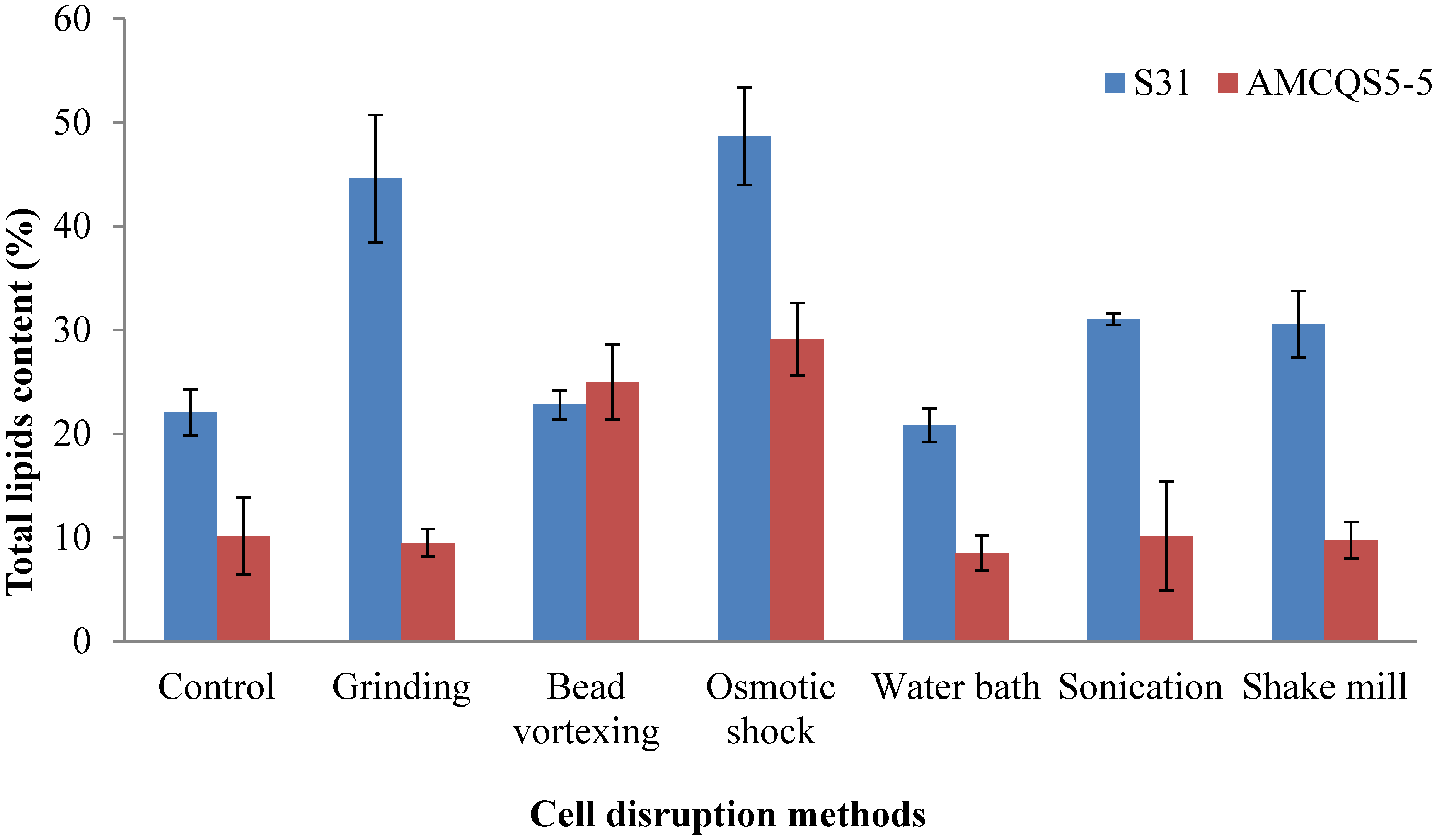 | Bead vortexing | Schizochytrium sp. S31 | 48.7 | |||