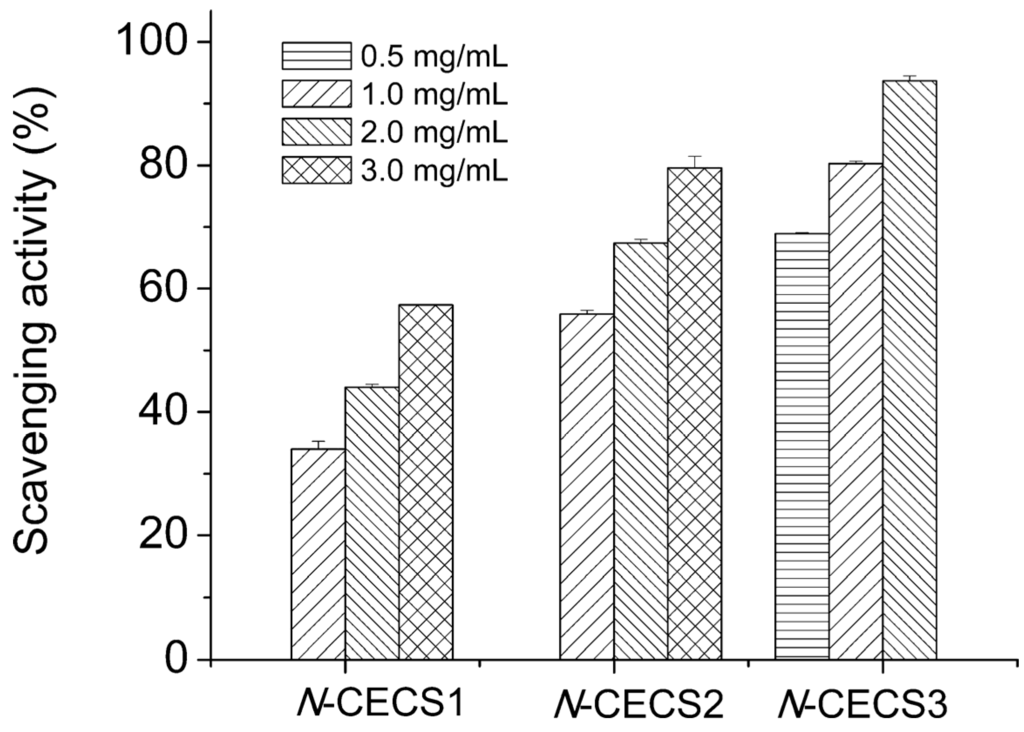 - Huang, J.; Xie, H.; Hu, S.; Xie, T.; Gong, J.; Jiang, C.; Ge, Q.; Wu, Y.; Liu, S.; Cui, Y.; et al. Preparation, characterization, and biochemical activities of N-(2-Carboxyethyl)chitosan from squid pens. J. Agric. Food Chem. 2015, 63, 2464–2471. [Google Scholar] [CrossRef] [PubMed]