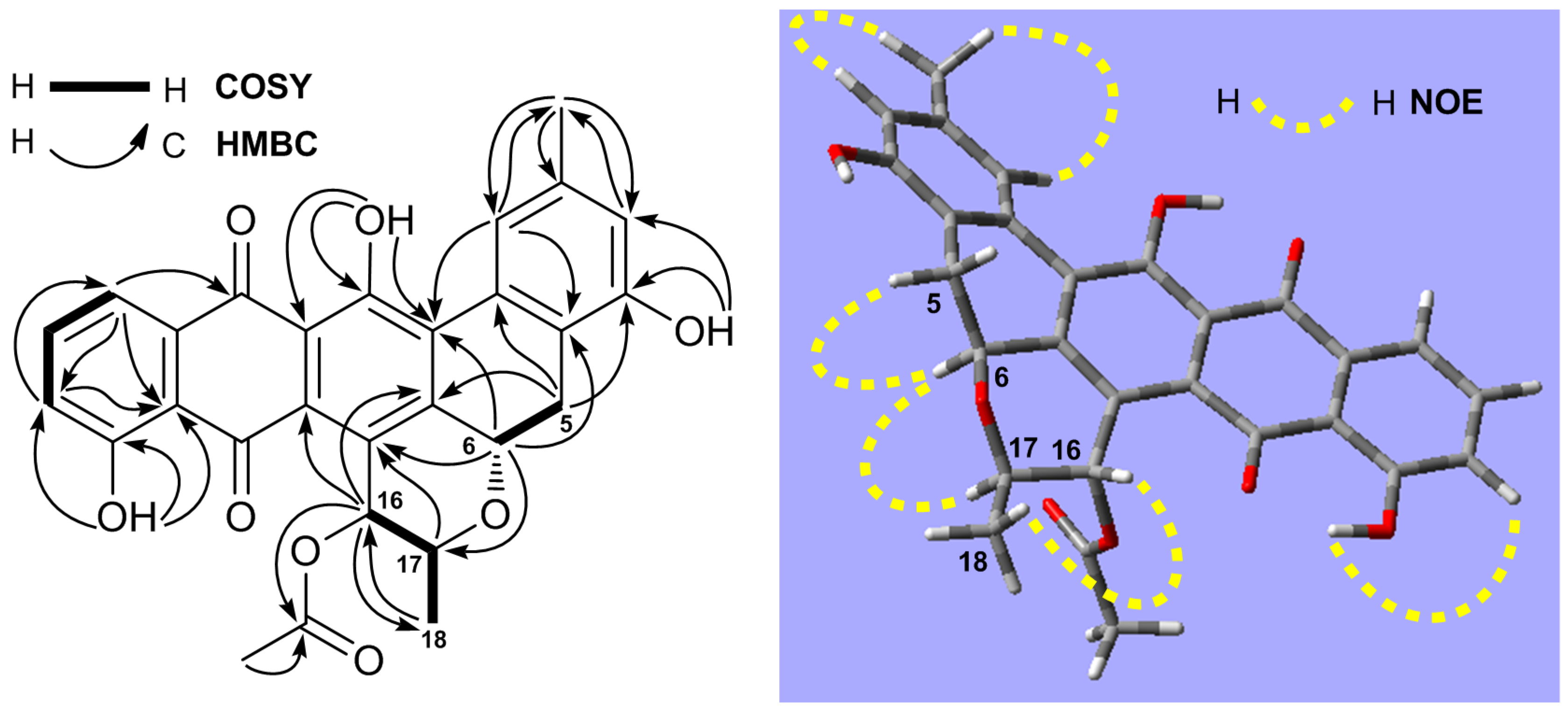 - Fernekorn, U.; Heinze, T.; Schlegel, B.; Dahse, H.M.; Gräfe, U. Synthesis of a new polycyclic quinone by reduction of a dihydrobenzo. J. Antibiot. 2001, 54, 191–192. [Google Scholar] [CrossRef] [PubMed]