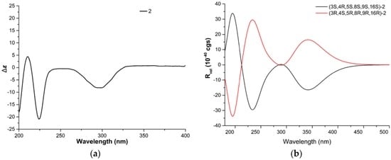 (a) Experimental CD of 2, and (b) calculated ECD of 2 in MeOH.