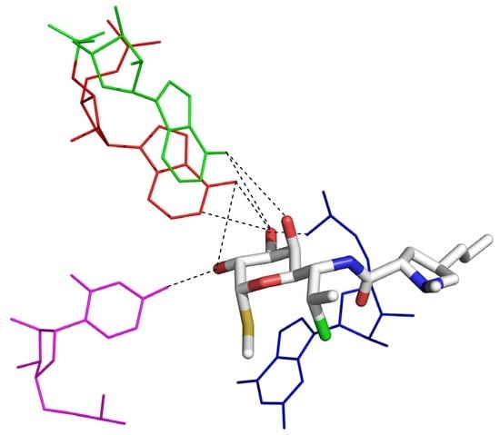 - Douthwaite, S. Interaction of the Antibiotics Clindamycin and Lincomycin with Escherichia coli 23S Ribosomal RNA. Nucleic Acids Res. 1992, 20, 4717–4720. [Google Scholar] [CrossRef] [PubMed]