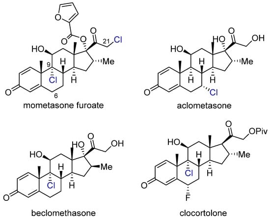 alkyl halide; stereochemistry; lipophilicity; anesthetic; clindamycin; corticosteroid; pimecrolimus; sucralose; halomon; lapachone; astins; forazoline 1. Introduction