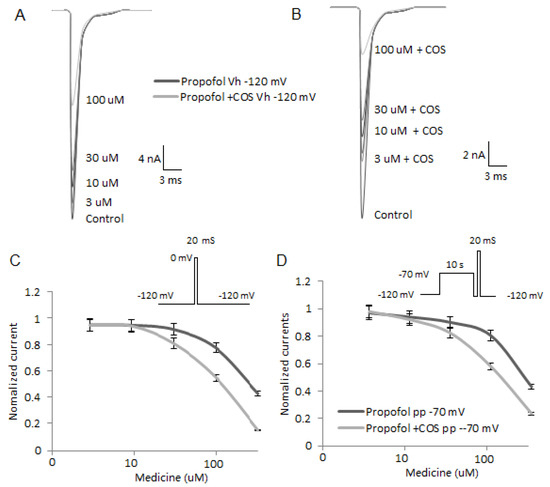 2.8. COS Also Promotes Propofol-Produced Stabilization of Fast and Slow Inactivation