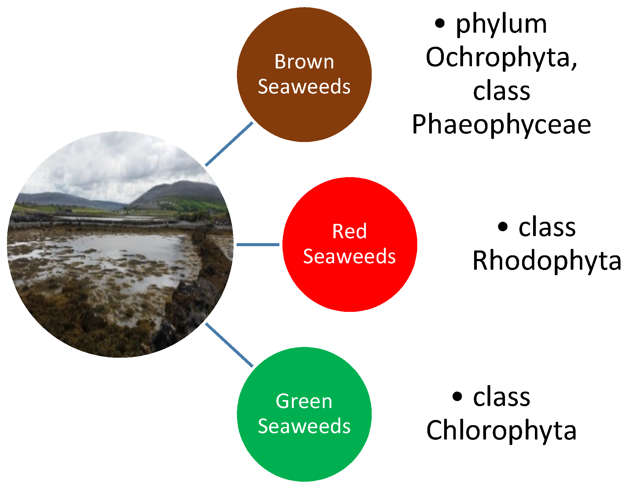 Seaweeds are an extensive group of autotrophic organisms that have a long fossil history. They are globally distributed and can be found in every climatic zone ranging from the tropical warm waters to freezing cold Polar Regions [1]. At present, more than 10,000 different species of seaweed are known [2]. The traditional division of the various seaweed species is one based largely on differences in pigmentations. The three main groupings are; the Brown seaweeds (phylum Ochrophyta, class Phaeophyceae), the Red seaweed (phylum Rhodophyta) and the Green seaweeds (phylum Chlorophyta) (Figure 1) [3]. Seaweeds have been extensively used by mankind since the beginnings of recorded history in a wide assortment of different ways. They are an important source of unique polysaccharides (agar, carrageenan, alginates, etc.) for the pharmaceutical and food industries and the use of seaweed extracts as gelling agents and thickeners goes back almost half a millennium. The practice of extracting agar from seaweed was first described in 1658 in China and agar is well known today as a common substrate in bacterial culture medium, being first used by the pioneering German microbiologist Robert Koch [1]. Drift seaweed washed up on shore has been used as an organic agricultural fertiliser in coastal regions of the world for centuries. The application of seaweed as a fertiliser improves soil structure, provides trace elements and growth activators [4] as well as resulting in earlier seed germination, the enhancement of crop performance and yield and a better resistance to both biotic and abiotic stresses [5].