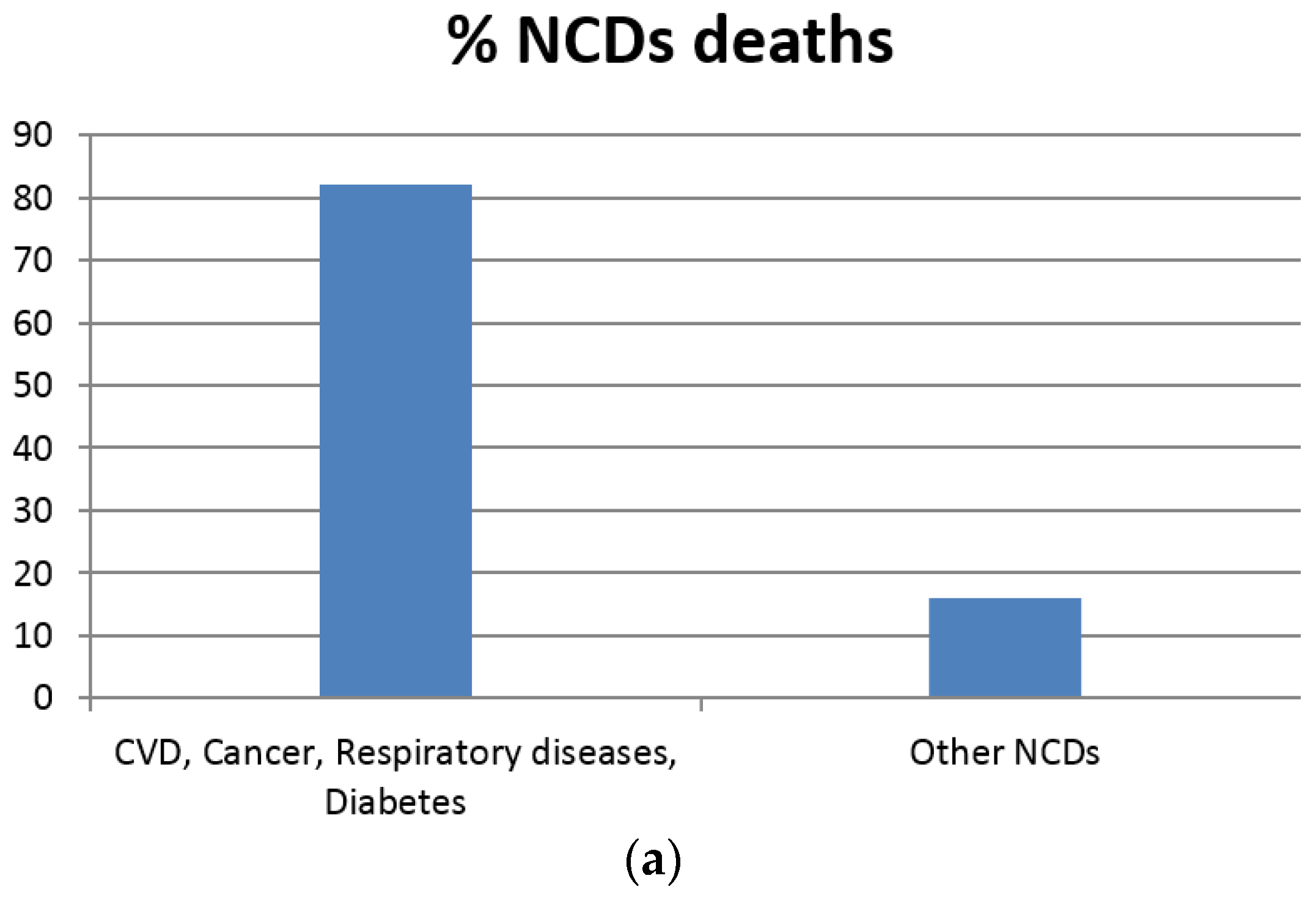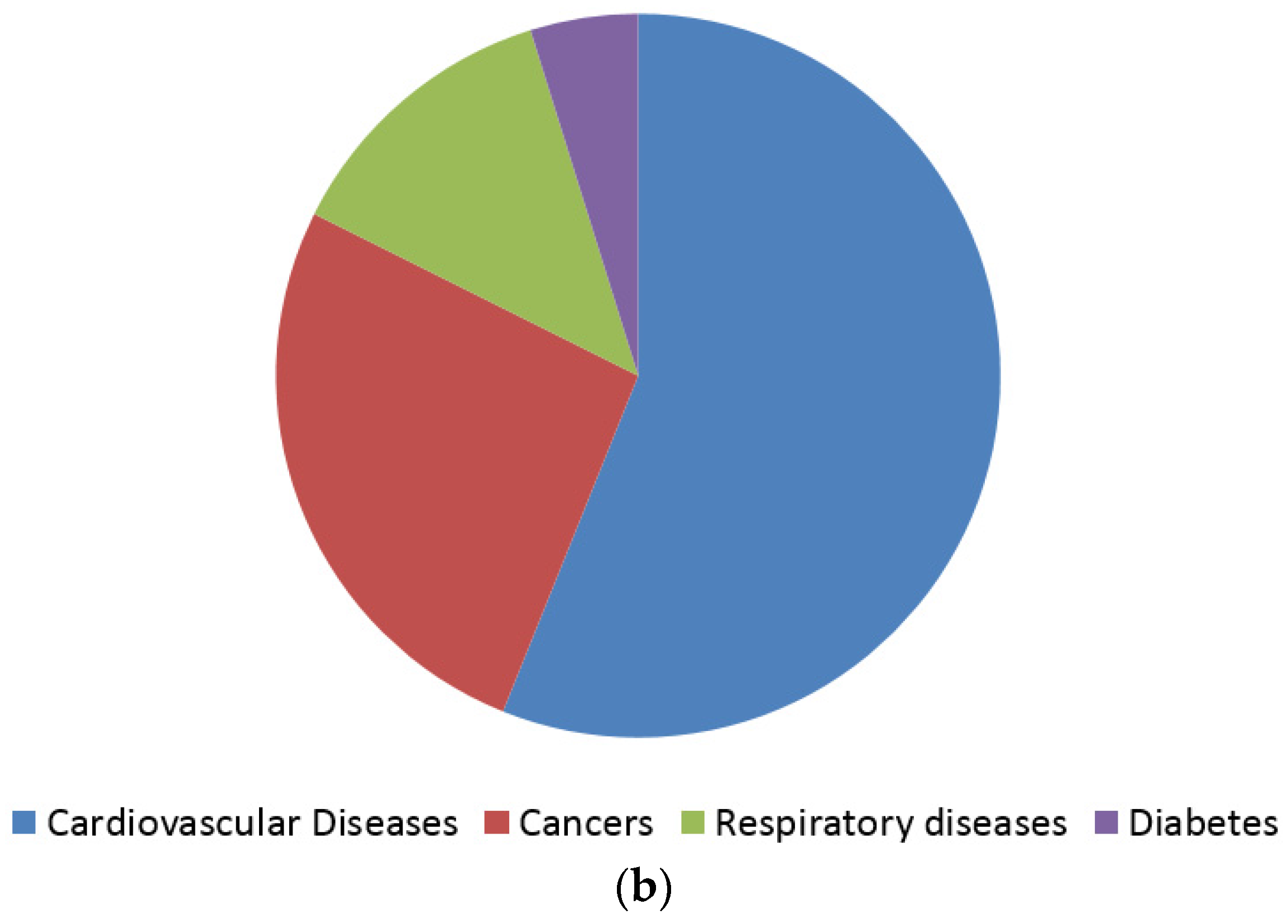 According to the World Health Organization (WHO) (a) cardiovascular diseases, cancers, respiratory diseases and diabetes account for 82% of all deaths attributed to non-communicable diseases; (b) Each year, cardiovascular diseases account for 17.5 million deaths, cancers (8.2 million), respiratory diseases (4 million) and diabetes (1.5 million) [24].