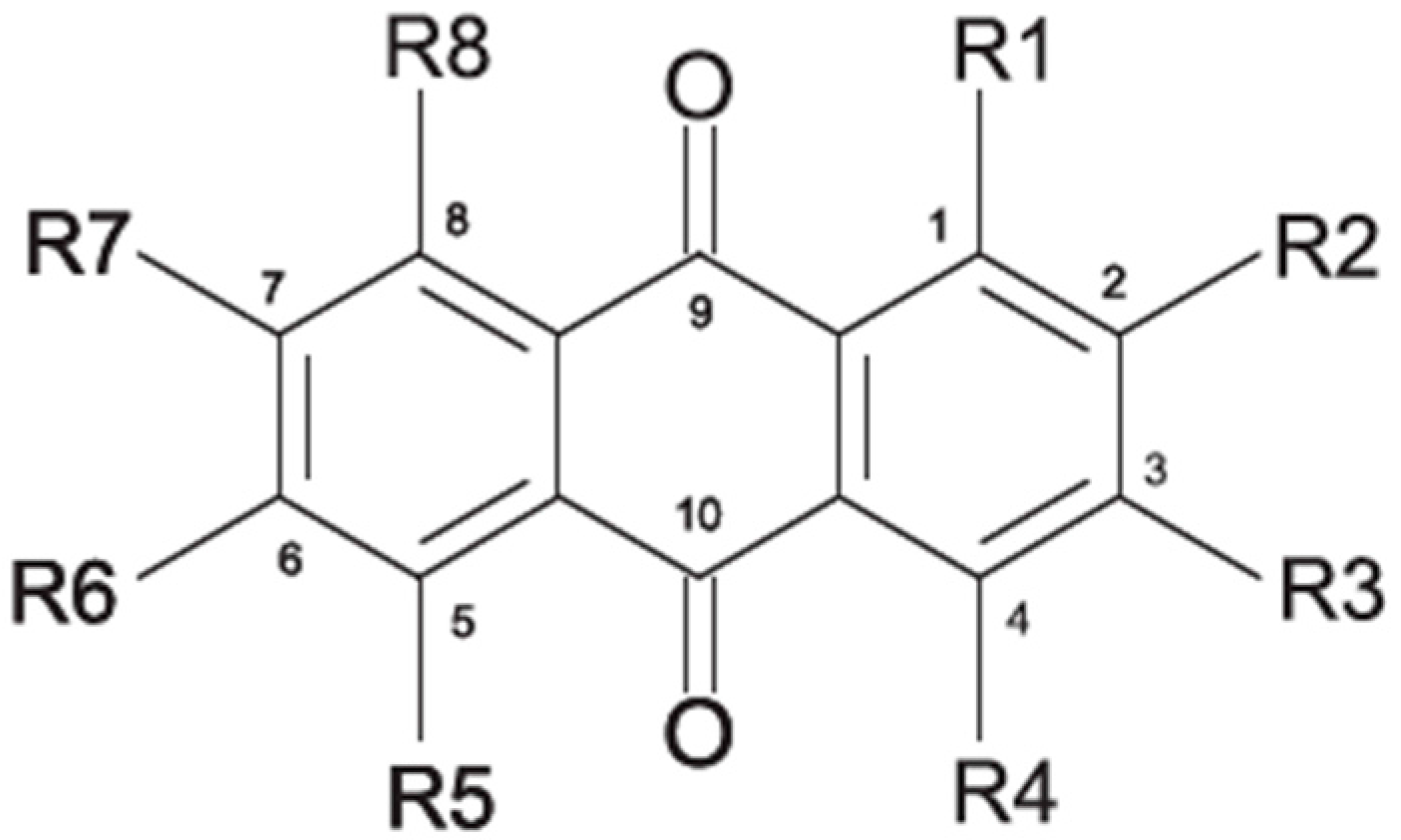 2.1. Anthraquinone′s Basic Structure