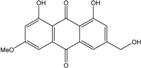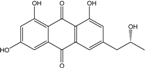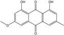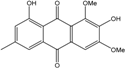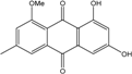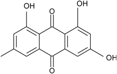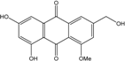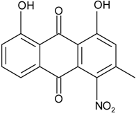 - Mobley, J.R. 1,3,6,8-trihydroxymethylanthraquinone. U.S. Patent 5039707 A. 5,039,707, 13 August 1991. [Google Scholar]