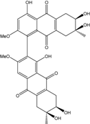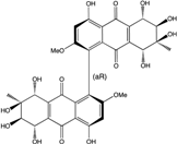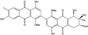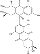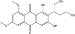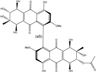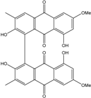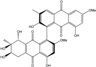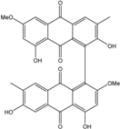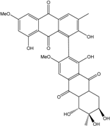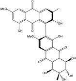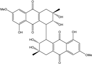 10,10′-dimer of emodin and physcion along with cynodontin, helminthosporin, tritisporin, unusual in this genus are excreted by the mangrove strain A. glaucus HB1-19. Two new hexahydroanthrones—tetrahydrobostrycin and 1-deoxytetrahydrobostrycin—are produced by Aspergillus sp. 05F16, a strain isolated from an unidentified alga collected in a coral reef (Indonesia).