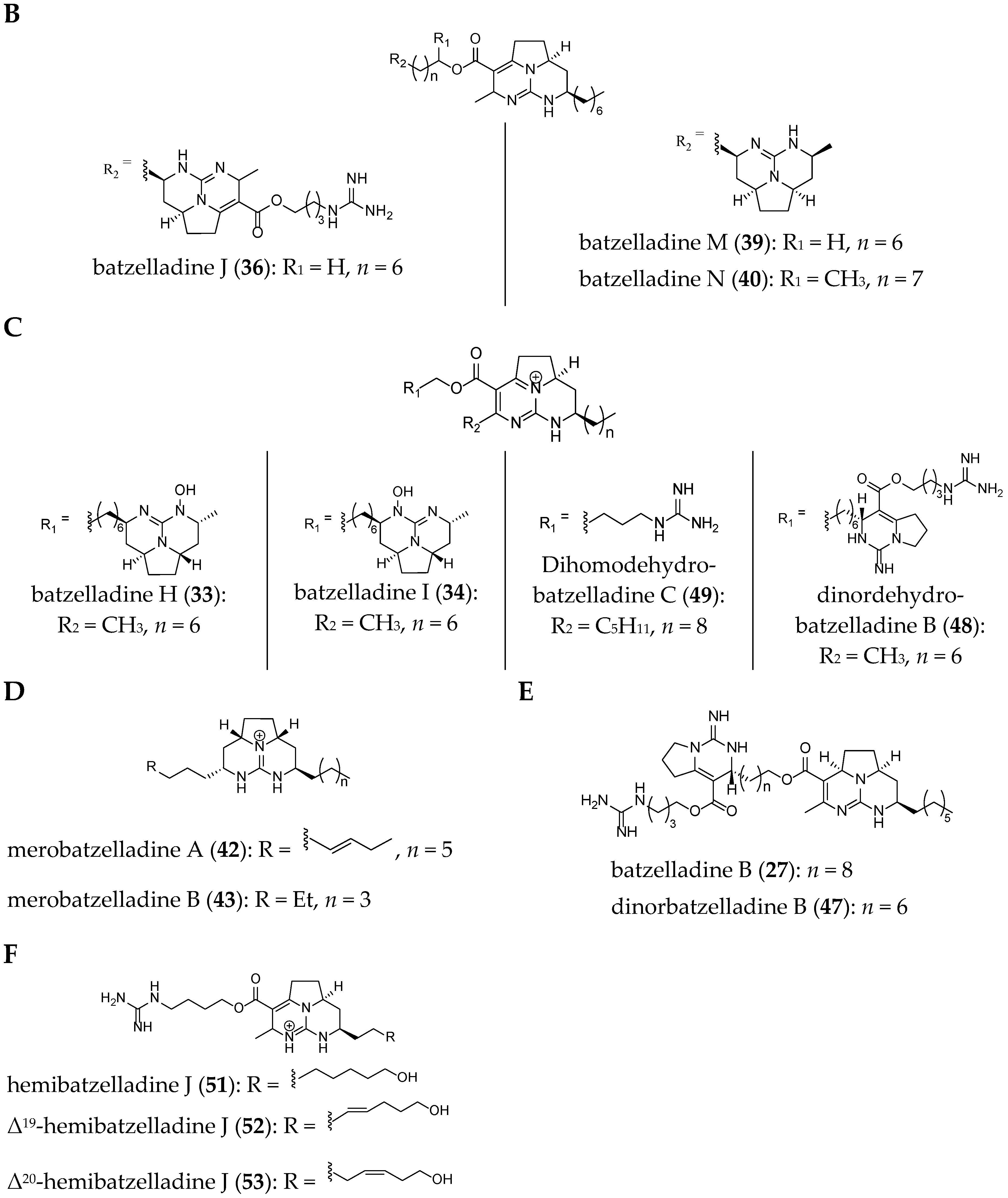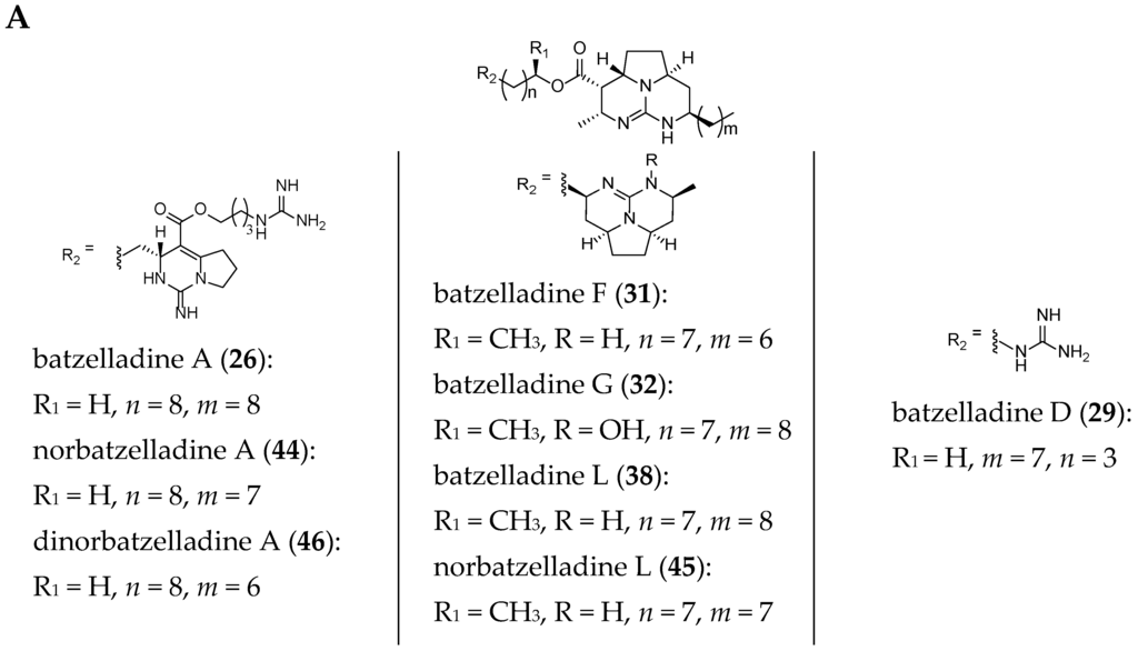 The current structures of 22 related batzelladine-like GA are summarized in Figure 6.