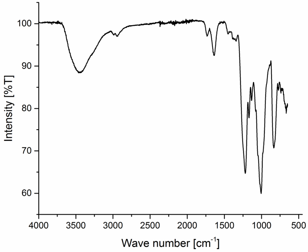 Molecular weight measurements were performed using an isocratic HPLC pump L 7100 with an auto sampler AS-2000 A. Samples were dissolved in eluent in a concentration of 4 mg·mL−1 and mixed with an equal volume of 1 mg·mL−1 ethylene glycol solution as a flow marker. Separation was performed at 25 °C using a GPC_MCX column 8 × 30 mm, which was previously calibrated with dextran sulfate (analytical standard grade for GPC) of different molecular sizes (25–670 kDa). The injection volume was 10 µL and eluent was 0.05 M phosphate buffer at pH 9.1 with a volumetric flow rate of 1 mL·min−1. The sample detections were performed using Shodex® RI-101 detector.