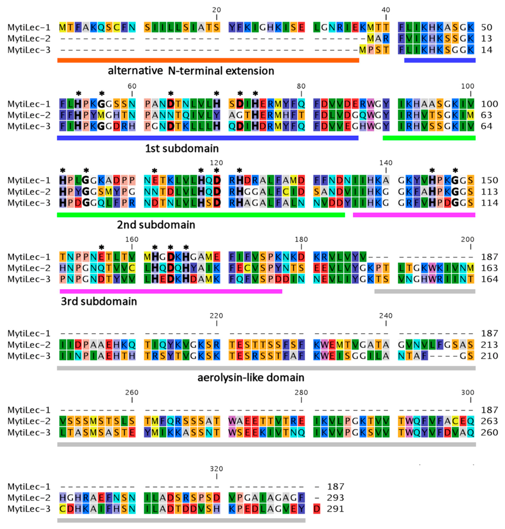 2.2. Comparison of Deduced Primary Structures among M. galloprovincialis Mytilectins