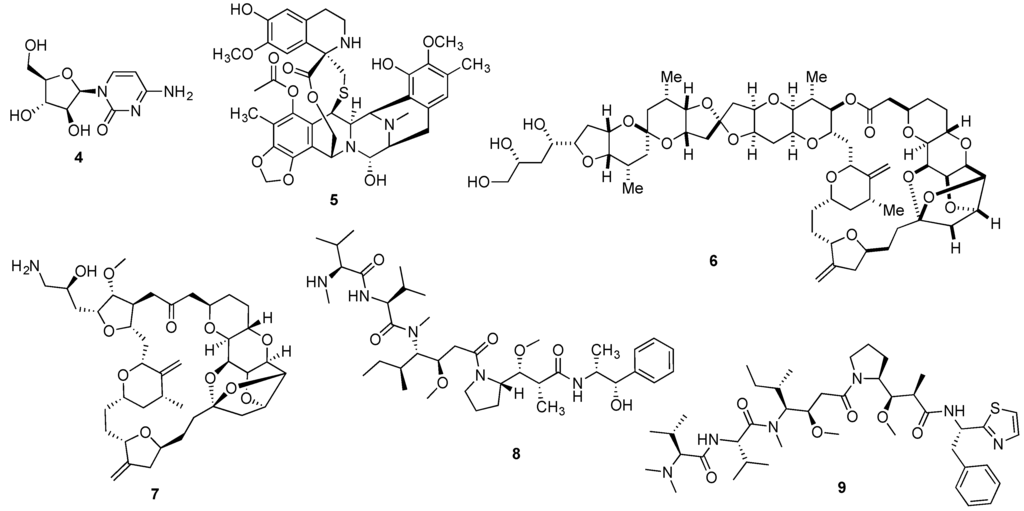 - Newman, D.J.; Cragg, G.M. Marine natural products and related compounds in clinical and advanced preclinical trials. J. Nat. Prod. 2004, 67, 1216–1238. [Google Scholar] [CrossRef] [PubMed]