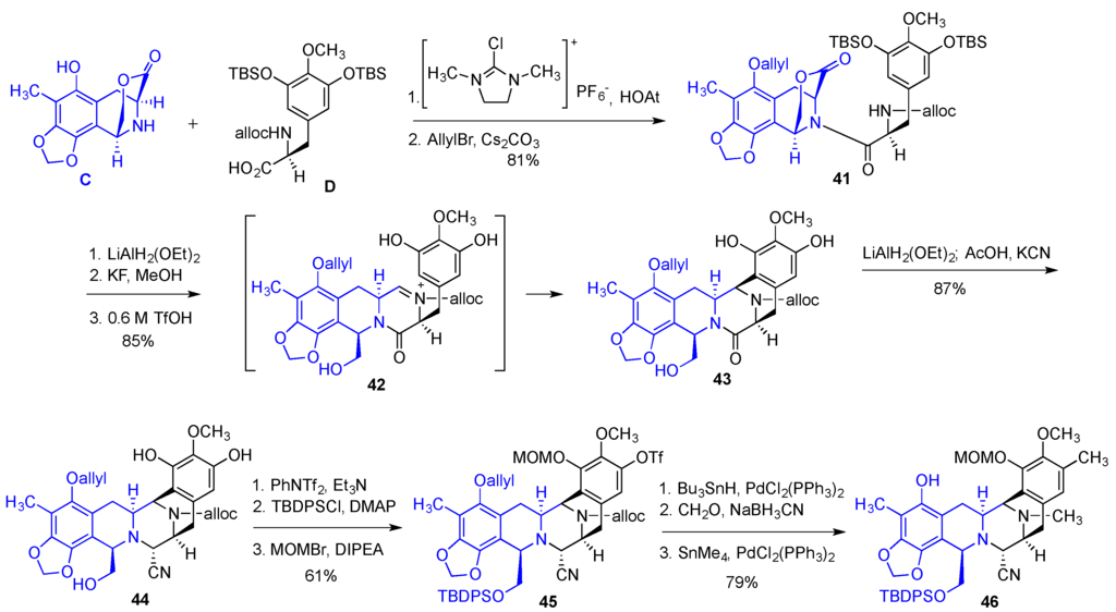 | Renieramycin M | T | 21 | N-Trityl-l-serine methyl ester | [268] |