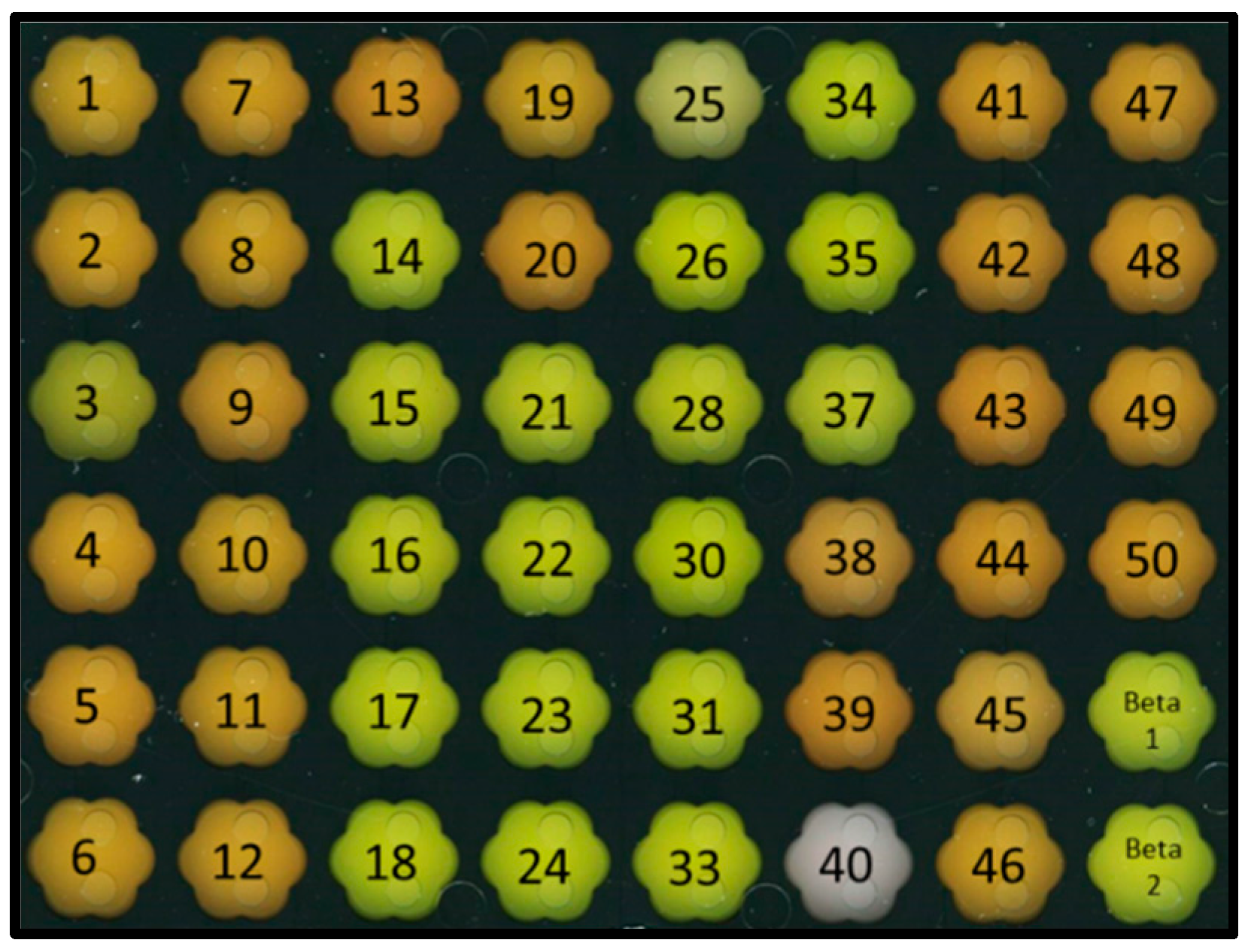 4.5. Combinatorial Gene Assembly, Library Construction and Overexpression of Carotenogenic Genes