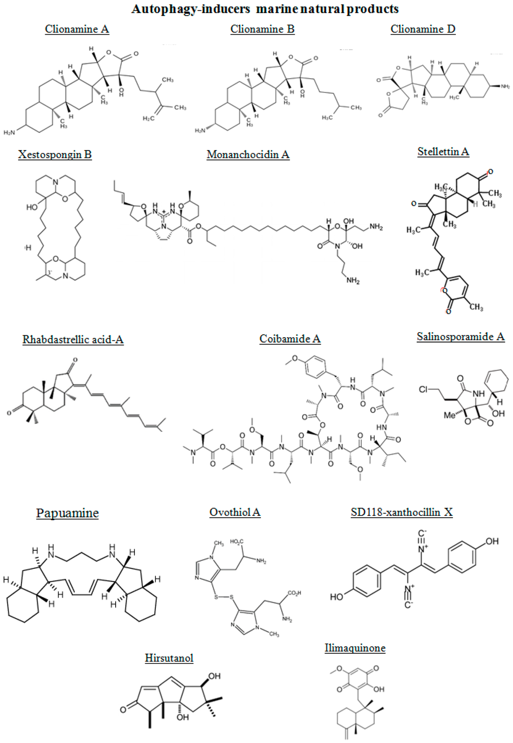 Chemical structure of different autophagy-inducers, natural products from marine organisms.