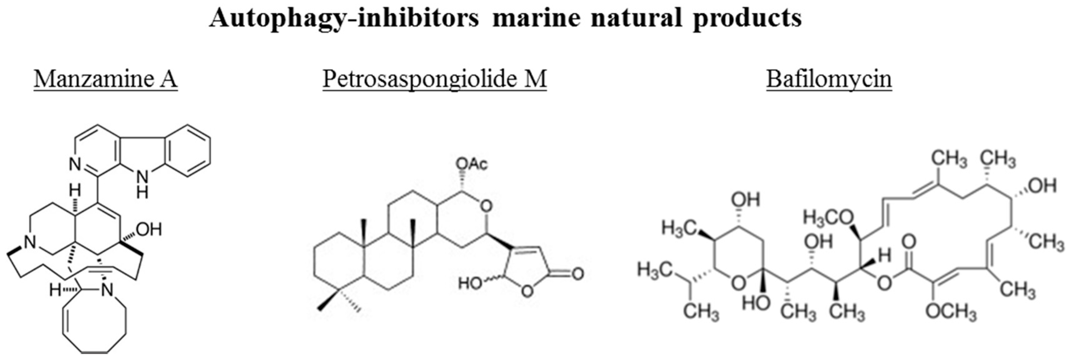3.2. Autophagy-Inhibitors Marine Natural Products