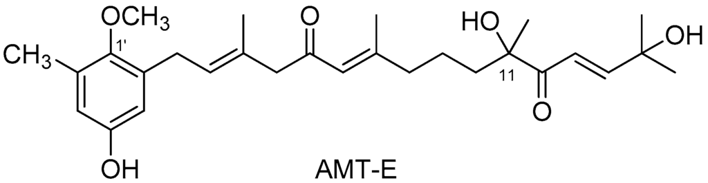 Chemical structure of the meroditerpene 11-hydroxy-1′-O-methylamentadione (AMT-E).