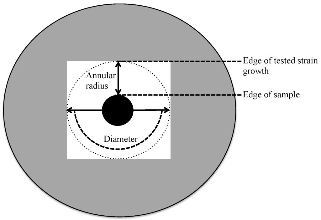 Sketch depicting the annular radius and diameter of the zone of inhibition.