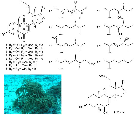 8. Chang, Y.-C.; Hwang, T.-L.; Sheu, J.-H.; Wu, Y.-C.; Sung, P.-J. New anti-inflammatory 9,11-secosterols with a rare tricyclo[5,2,1,1]decane ring from a Formosan gorgonian Pinnigorgia sp. Mar. Drugs 2016, 14, 218. [Google Scholar] [CrossRef] [PubMed]