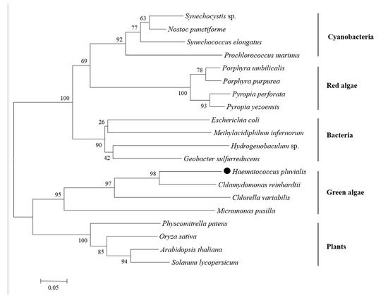 A Neighbor-Joining tree was generated by PII proteins of microalgae, plants, and bacteria via MEGA 6.06 software. There were five clusters: cyanobacteria, red algae, bacteria, green algae, and plants (Figure 5). HpPII protein was grouped with the PII proteins of Chlorophyta algae (C. reinhardtii, C. variabilis, Micromonas pusilla).