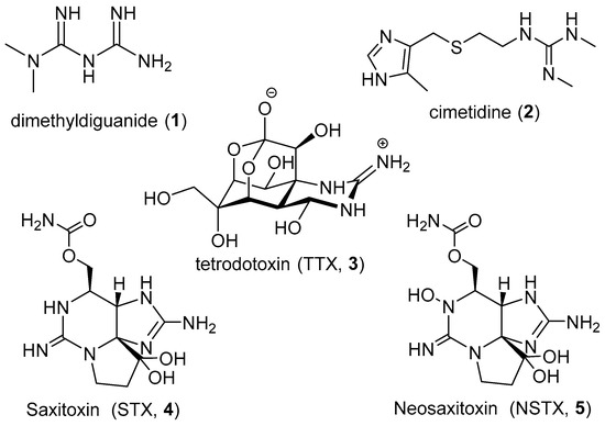 Structures of the represented guanidine compounds containing drugs or toxins.
