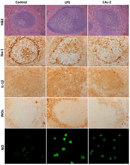 2.1. CA2-2 Increased iba-1, IL-1β and iNOs Positive Stained Areas in Red Pulp of Mouse Spleen