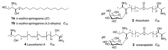 d-Sphingosine (1a), its dihydro-derivative, sphinganine (1b), and “two-headed” sphingolipid natural products.