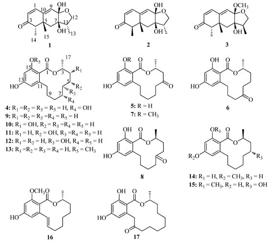 Structures of compounds 1–17.