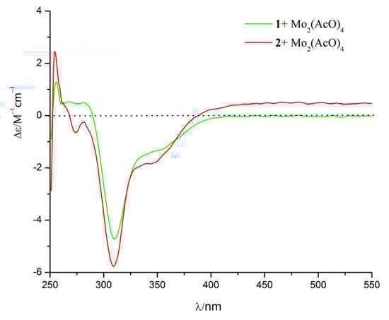 Mo2(AcO)4-induced CD spectra of compounds 1 and 2.