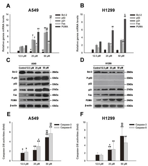 2.5. Effects of FX on the Expression of Apoptosis-Related Genes in NSCLC Cells