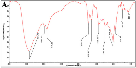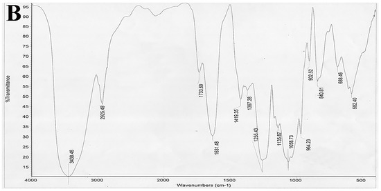 (A) Infra-red (IR) spectrum of desulfated derivative STPC2-DeS; and (B) the IR spectrum of STPC2.