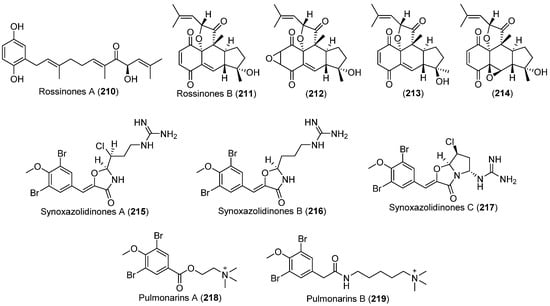 - Appleton, D.R.; Chuen, C.S.; Berridge, M.V.; Webb, V.L.; Copp, B.R. Rossinones A and B, biologically active meroterpenoids from the Antarctic ascidian, Aplidium species. J. Org. Chem. 2009, 74, 9195–9198. [Google Scholar] [CrossRef] [PubMed]