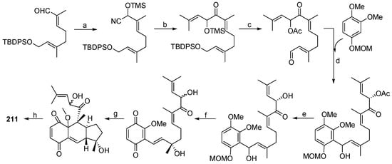 - Welsch, T.; Tran, H.A.; Witulski, B. Total syntheses of the marine illudalanes alcyopterosin I, L, M, N, and C. Org. Lett. 2010, 12, 5644–5647. [Google Scholar] [CrossRef] [PubMed]
