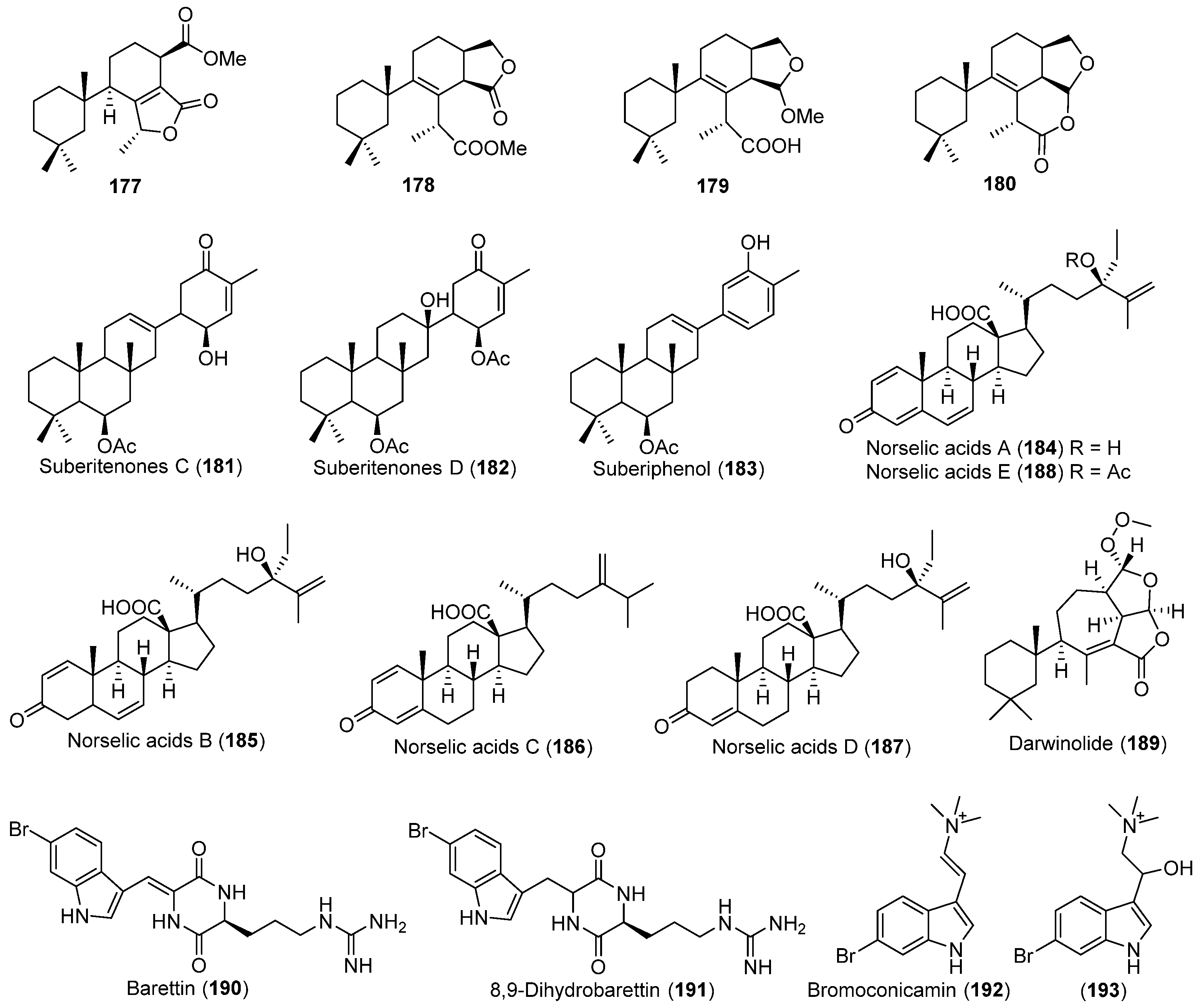 | Suberites sp. | 181–183 | Antarctic | [102] | ||