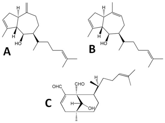 Antithrombotic agents used in clinics. Some studies described marine products from seaweeds as feasible anticoagulants to be explored such as those isolated from the brown alga, Canistrocarpus cervicornis (e.g., heterofucans) [9] and fruits of Ilex paraguariensis [10]. Diterpenes also represent a class of secondary metabolites with high biotechnological potential [11]. Recently, De Andrade Moura and coworkers reported the inhibitory effects against human platelet aggregation and blood coagulation of dichotomanol, a rare exclusively marine diterpene with two aldehyde groups and pachydictyol A and isopachydictyol A which are mainly prenylated derivatives of known guaiane sesquiterpenes, all isolated from the Brazilian marine brown alga Dictyota menstrualis [2] (Figure 2). As detected by in vitro enzymatic assays, these diterpenes act as anticoagulants and antiplatelets through interaction with Thrombin, a key enzyme of the coagulation cascade, a platelet aggregation agonist and an important target for thrombotic diseases treatment [2,12,13].