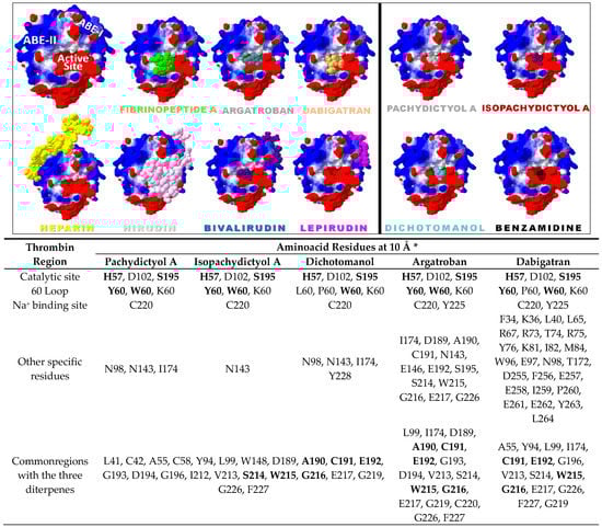 Thus, in this work we used molecular modeling approach in order to identify the key interactions and structural features responsible for the thrombin inhibitory effects of pachydictyol A, isopachydictyol A, and dichotomanol and to help in exploring the biotechnological potential of these diterpenes.