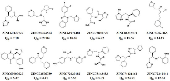 Chemical structures of the twelve compounds retrieved from the ZINC database.
