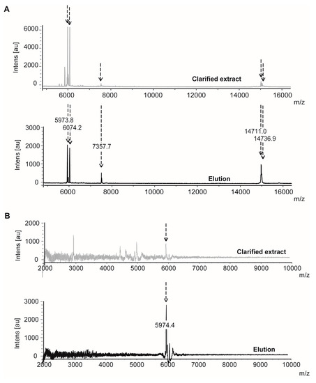 - Villanueva, J.; Yanes, O.; Querol, E.; Serrano, L.; Aviles, F.X. Identification of protein ligands in complex biological samples using intensity-fading maldi-tof mass spectrometry. Anal. Chem. 2003, 75, 3385–3395. [Google Scholar] [CrossRef] [PubMed]