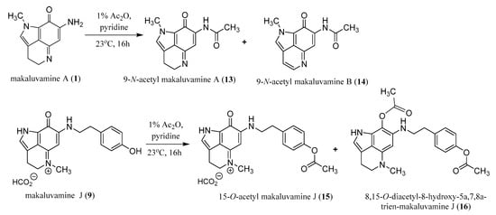 4.6. Acetylation of Makaluvamines A (1) and J (9)