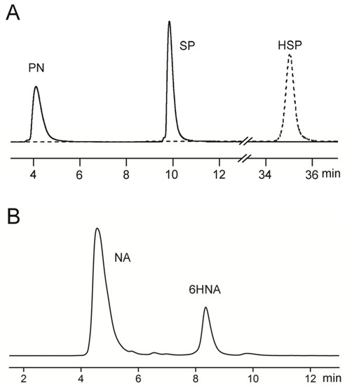The following are available online at http://www.mdpi.com/1660-3397/15/6/156/s1. Figure S1: The HPLC profile of standard product of nicotine (A) and its standard curve (B), Figure S2: The HPLC profile of standard product of nicotinic acid (A) and its standard curve (B), Figure S3: The HPLC profile of standard products of PN, SP and HSP, Figure S4: The HPLC profile of standard products of NA and 6HNA.