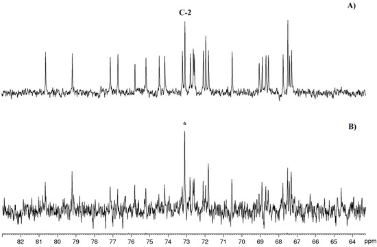 | 1 | CH2 | 67.6 | 3.55, m; 3.59, m | 67.1 | 3.44, dd, 11.0, 6.3; 3.51, m | 33 | CH | 72.7 | 3.87, dd, 9.0, 2.0 | 72.4 | 3.70, m |