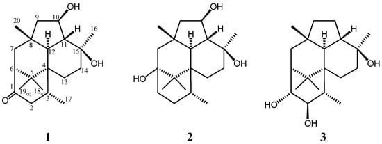 - Sun, P.-X.; Zheng, C.-J.; Li, W.-C.; Huang, F.; Qin, L.-P. Trichodermanin A, a novel diterpenoid from endophytic fungus culture. J. Nat. Med. 2011, 65, 381–384. [Google Scholar] [CrossRef] [PubMed]