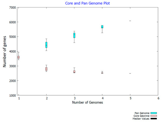 Core vs. pan-genome size plot generated with Bacterial Pan Genome Analysis BPGA tool [49].