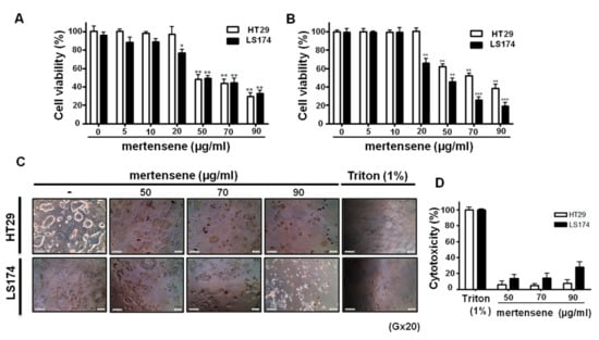2.2. Mertensene Affects the Viability of HT29 and LS174 Human Colon Adenocarcinoma Cells Independently of Their p53 Status