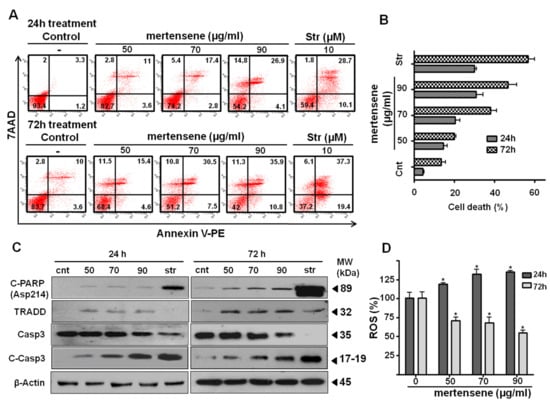 2.5. Mertensene Induces Apoptotic Cell Death in HT29 Cells