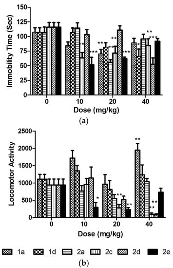 | Compound 2d 40 mg/kg | 52.4 ± 11.1 *** | 73 ± 34 ** |