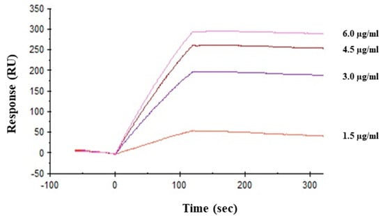Direct interaction between viral hemagglutinin and HRL40 was tested by surface plasmon resonance (SPR) analysis. Hemagglutinin was immobilized onto the sensor chip (CM5) as the amount corresponding to 9672.6 resonance units (RU). As shown in Figure 5, lectin directly bound to hemagglutinin in a dose dependent manner and the affinity of HRL40 for hemagglutinin was revealed by the KD value of 3.69 × 10−11 M (Table 3).
