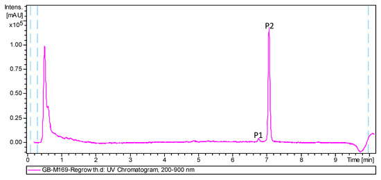 HPLC trace of the ethyl acetate extract of Streptomyces cyaneofuscatus M-169.